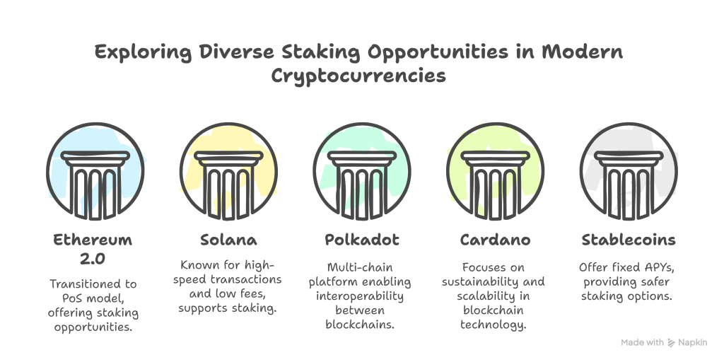 - Ethereum (ETH): Ethereum 2.0 transitioned to a PoS model, offering staking opportunities.